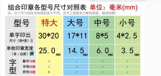 有一部分客戶需要的不僅僅是logo,而是需要順序印刷的編碼,例如“shuanglong-001”一直到“shuanglong-1000”這樣的話使用絲網(wǎng)印刷就明顯的不行了,我們不可能去做一千個(gè)絲網(wǎng)版。這種情況下我們一般使用活字碼人工進(jìn)行印刷,費(fèi)事費(fèi)力,并且印刷出來不是特別的規(guī)范美觀。如果同行有更好的方法請不靈賜教,我的QQ:764234081。下圖就是我們常用的活字碼的尺寸表。